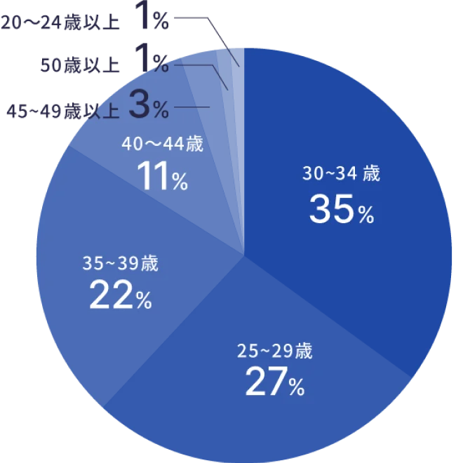 30代を中心に、20代の若手から40歳以上のベテランまですべての方のご支援が可能です。