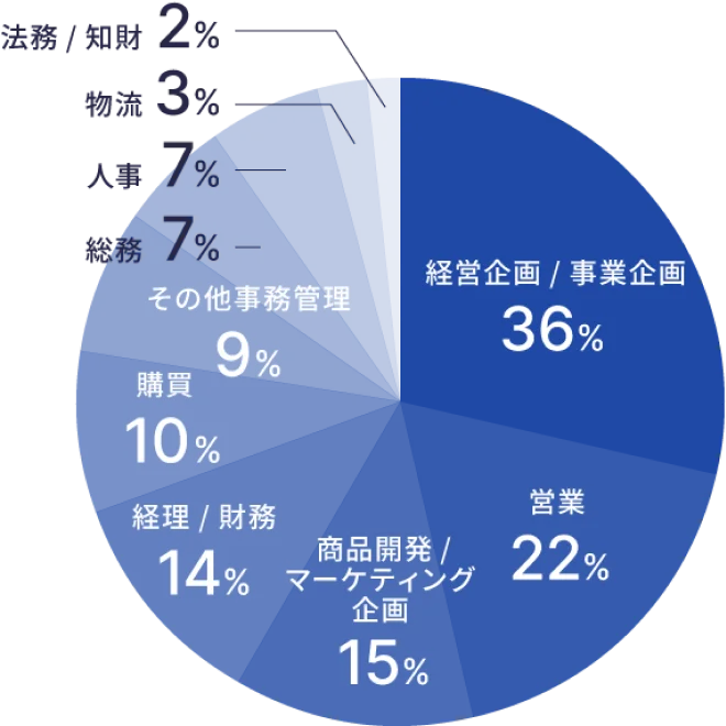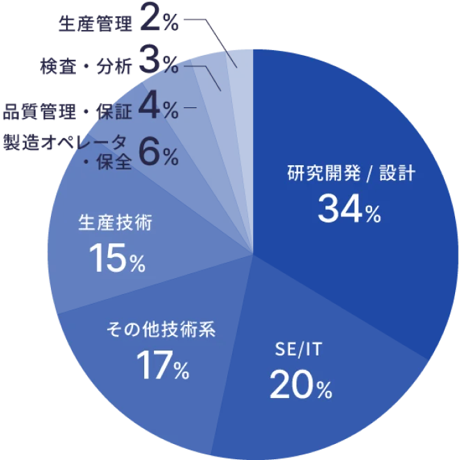 技術者から管理部門まで幅広い職種で支援実績あり、メーカーの職種すべてを専門的にカバーしています。