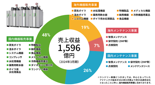 メインでボイラ事業から水処理、食機、メディカル、舶用、環境等へ幅広く事業展開されている点も強みと言えます。