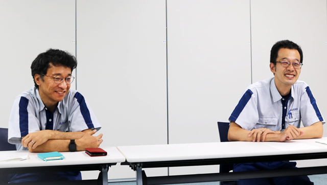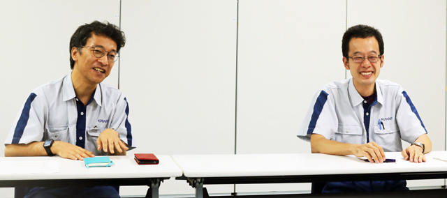 (写真左)大根 尚樹様 技術研究所 応用開発グループ 主任研究員(2012年9月入社)