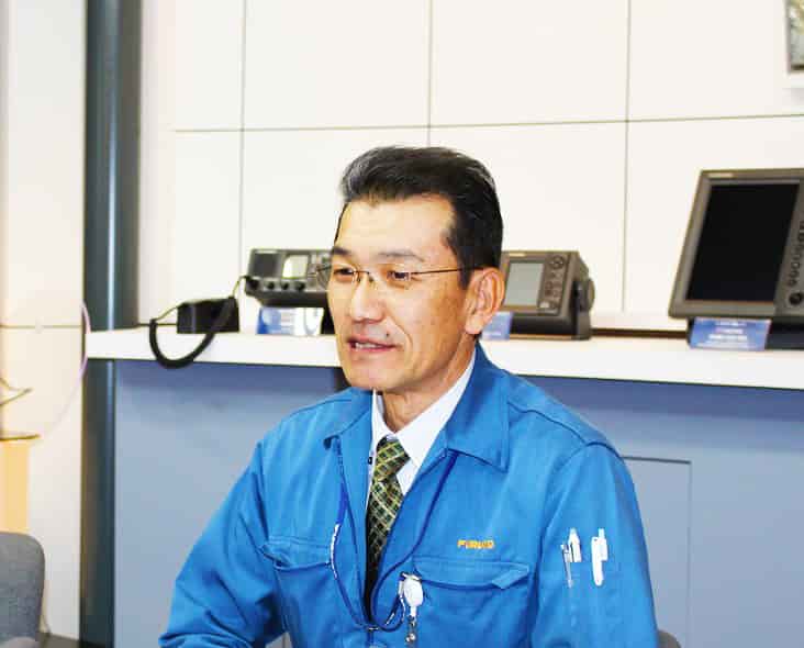 「「未来に向かう」、「最良に挑む」、「独創を貫く」、「率直を好む」、古野電気の行動指針です。これらの意識を持った方の応募をお待ちしています。人物像としては、探究心旺盛で、明るく元気な方、誠実で嘘をつかない方。また、PDCAサイクルを自ら回すことのできる方。技術の面では周りの人間がサポートしながら進めていきますので、気難しく考えずに挑戦していただきたいですね。」
