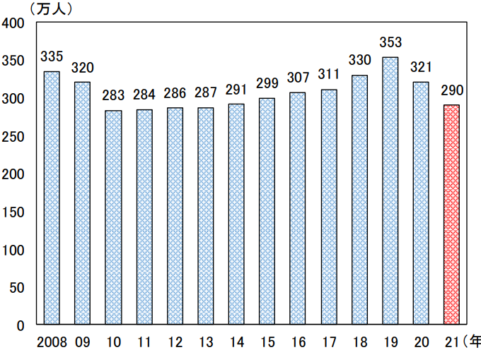 転職を考える時、なかなか周囲に相談できず孤独を感じる人もいるでしょう。しかし、厚生労働省令和4年版労働経済の分析を見ると、2010年頃から毎年増加傾向にあり、近年は毎年、約300万人前後の方々が転職していることがわかります。直近の2021年度は約290万人が転職しております。