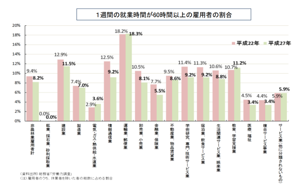 参考:厚生労働省 長時間労働の指摘がある業種・職種の実態について(例)
