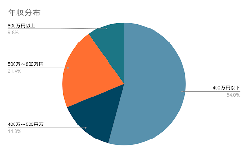 また、手取り30万円の額面年収が420万円~480万円のため、上記グラフの14.8%のうちに含まれています。中央値は400万円以下のため、手取り30万円は比較的高収入であると言えます。