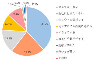 五月病だと感じた際の症状については、「やる気が出ない」「会社に行きたくない」という回答が過半数を占めました。